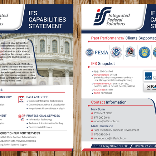 Create single page marketing / capabilities statement for clients in the federal marketplace