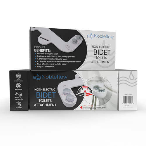 Design the packaging (box) for a new bidet attachment for toilets